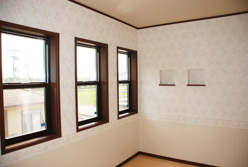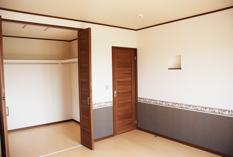 洋室のアクセントクロスがとても印象的な、お洒落で落ち着いた空間。